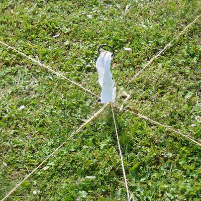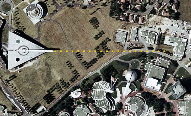 C'est un signe, le hasard validant est dans le coup, et cette "rose des vents" est donc adoptée comme la forme que devait fatalement prendre cette installation. L'idée d'une ligne droite suivant l'axe du lycée jusque sur les terres du parc du Futuroscope était séduisante, mais la vue aérienne (merci l'IGN et les pages jaunes) montre qu'on se heurtait au réseau routier du parc...