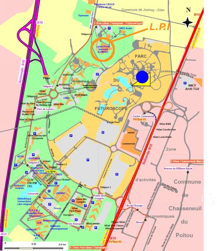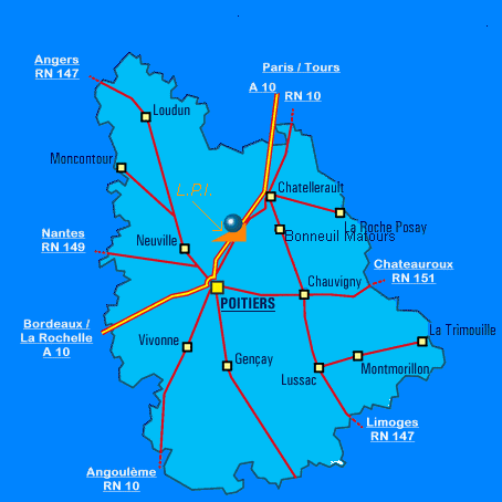 A 8 km au nord est de Poitiers et approximativement à 350 km de Paris, 200 km de Bordeaux et 150 km de La Rochelle, Le LP2I est accessible par le TGV (5 minutes de la Gare du Futuroscope) ou bien par l’autoroute A10. Quand vous êtes sur le site du Futuroscope suivre la direction "Téléport 5".