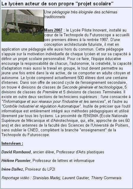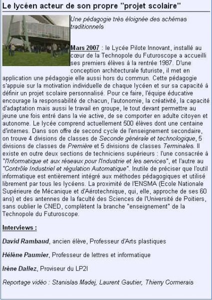 Le dernier numéro des Dossiers de l’ingénierie éducative porte sur le thème de : "La maîtrise de l’information". Outre le fait que cette revue et le thème sont très intéressants un article est consacré à DeltaFM, la radio du LP2I et plus particulièrement au travail effectué dans la réalisation d’émissions en PID.