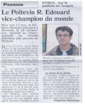 R.Edouard vice-champion du monde d’échec :