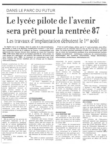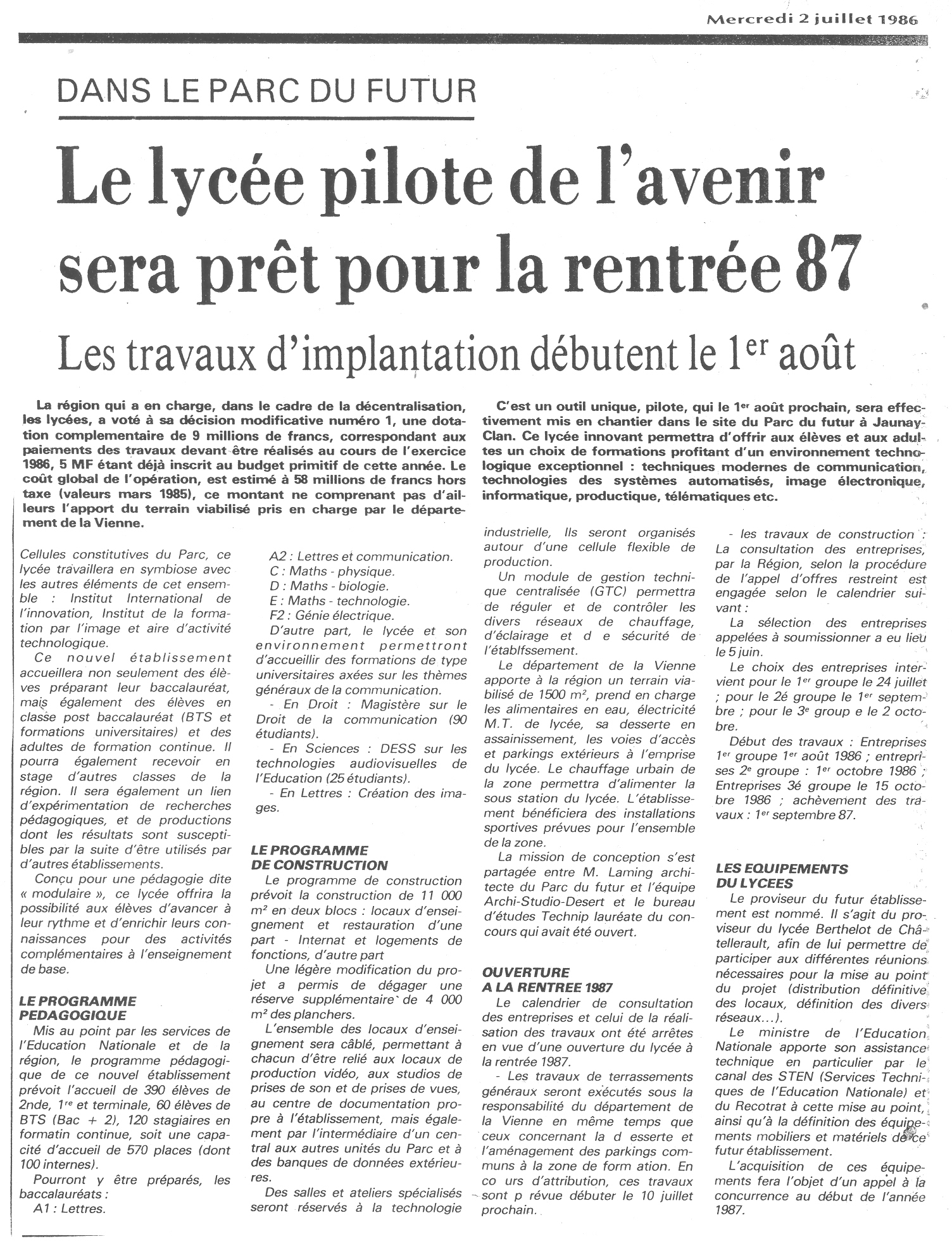 Le Lycée pilote de l’avenir sera prêt pour la rentrée 1987