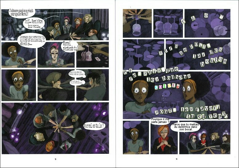 Planches 1 à 4 : les élèves allophones de seconde de niveau intermédiaire ont produit collectivement une courte BD s’inspirant de différents éléments des cinq albums sélectionnés pour le concours.