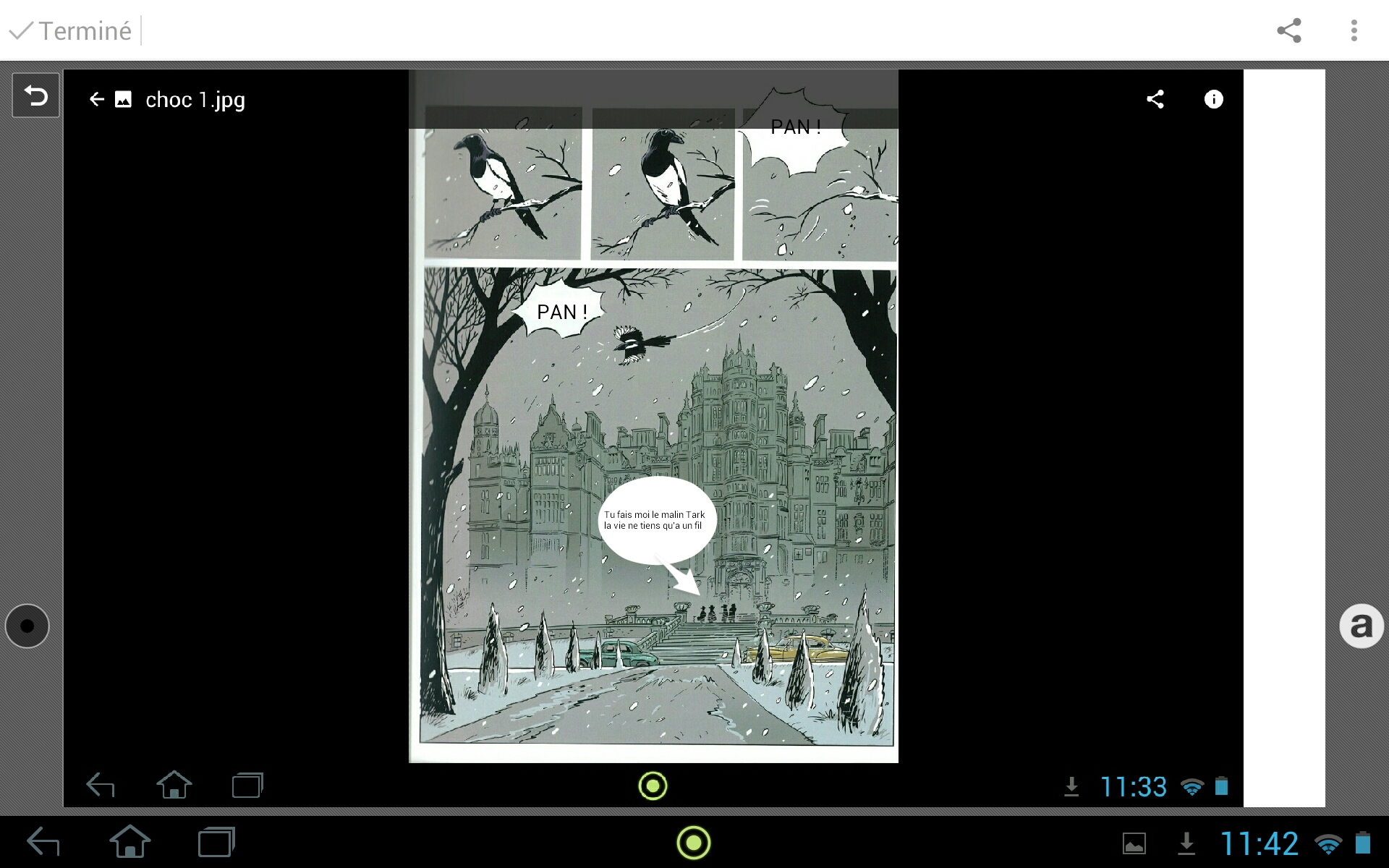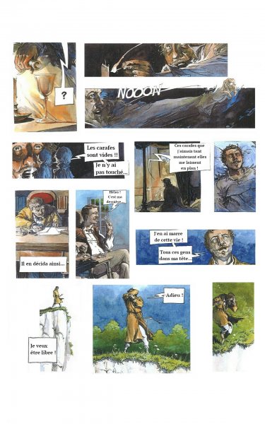 bd_finie-horla : cette réalisation est issue d’un autre atelier d’écriture. Les élèves devaient réaliser une planche à partir de vignettes issues de différentes planches du même album. Ils devaient ensuite réécrire le contenu des phylactères pour proposer une histoire nouvelle.