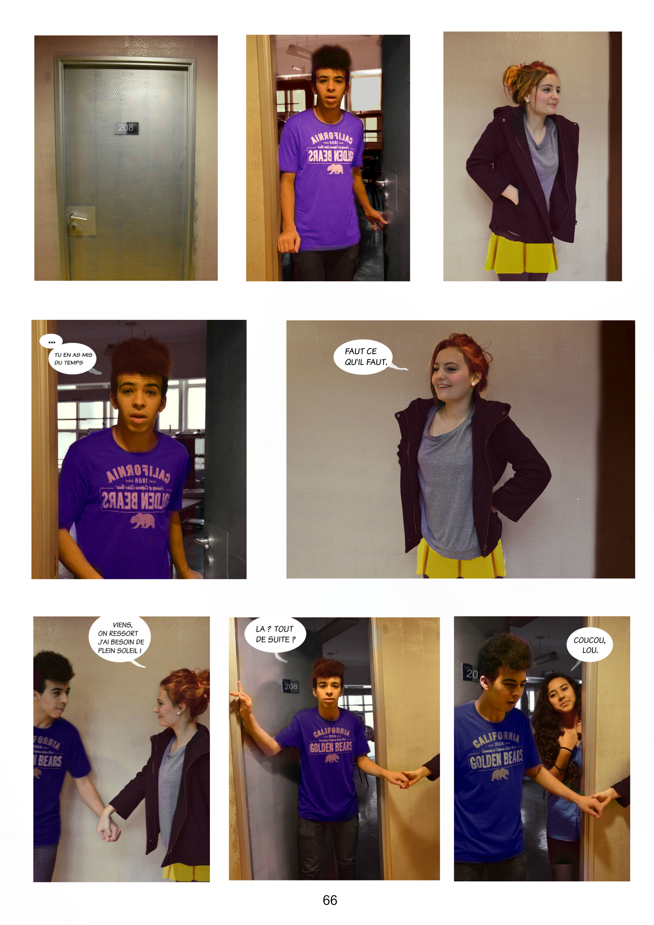 Planche_photos_bouchedombre : cette production consiste en la scénarisation à la façon d’un roman photos d’un passage significatif de la BD Bouche d’ombre.