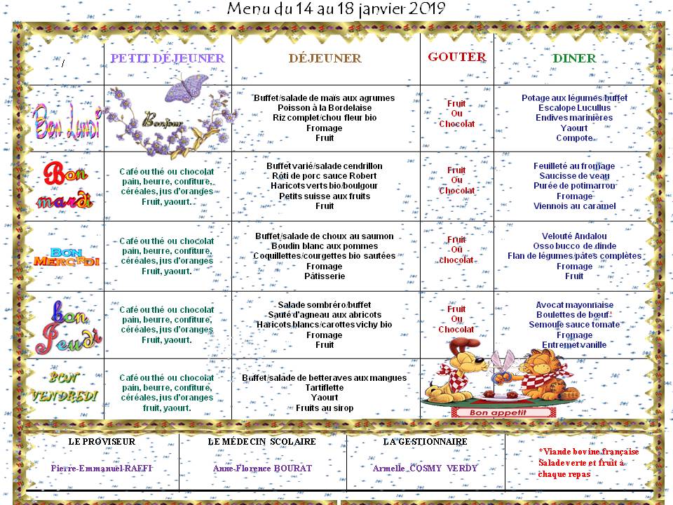 Menu du 14 au 18 janvier 2019