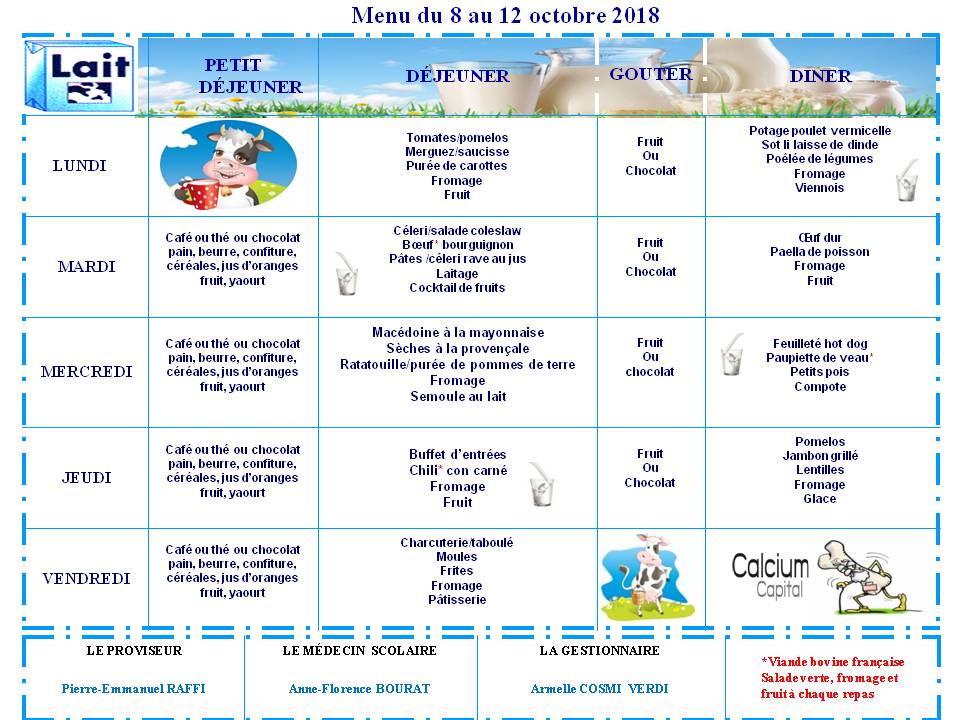 Menu du 8 au 12 octobre 2018