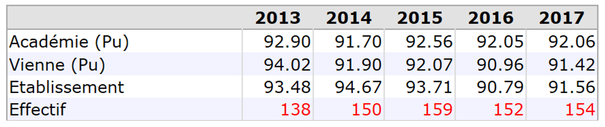 Taux de réussite au baccalauréat général : %Admis - session juin 2017 provisoire (indicateur rectorat)