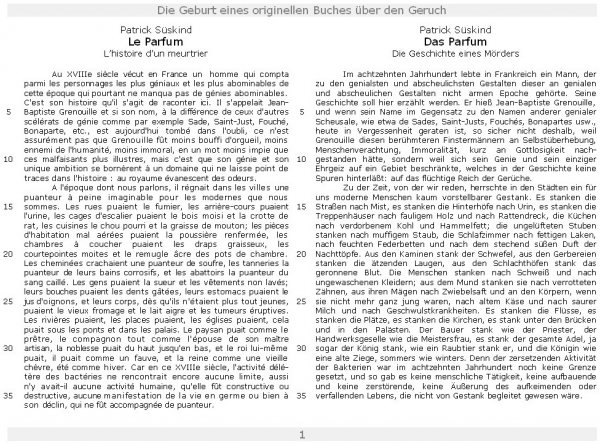 Avez-vous déjà vu ou lu Le Parfum ? Retrouvez ici le début malodorant du texte original en français et en allemand.