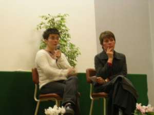 La lauréate (en blanc) accompagnée par Elisabeth Audousset qui a coordonné le projet