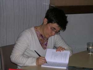 Marie-Sabine Roger en séance de dédicace pour les élèves