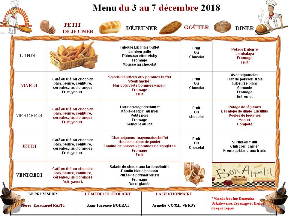 Menu du 3 au 7 décembre 2018