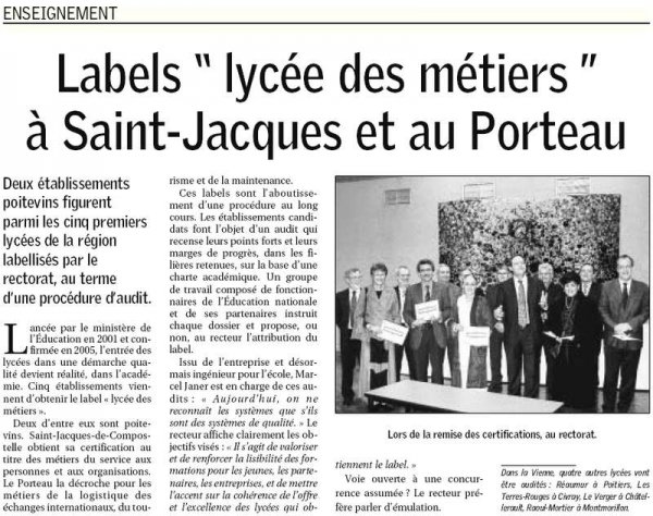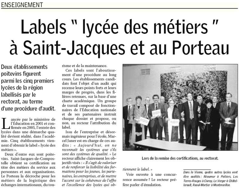 Labels "Lycée des métiers " à Saint-Jacques et au Porteau