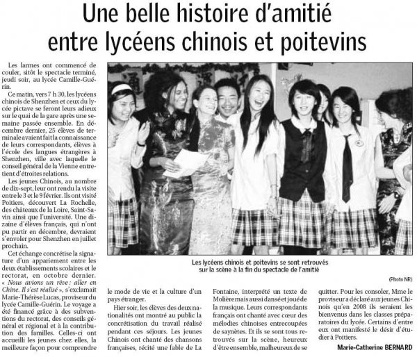 Amitié entre lycéens chinois et poitevins :