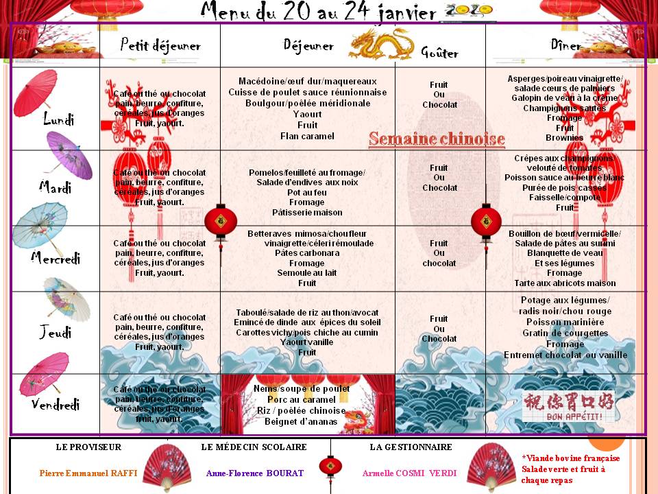 menu du 6 au 10 janvier 2020