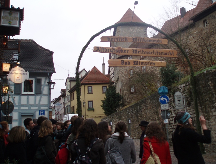 Der erste Tag remue-méninges Moyen-âge en groupe mixte Réception officielle par Monsieur Wittwer-Gärttner, proviseur du Hartmanni Gymnasium Visite guidée de Bad Wimpfen et de son célèbre marché de Noël Dans un froid de canard
