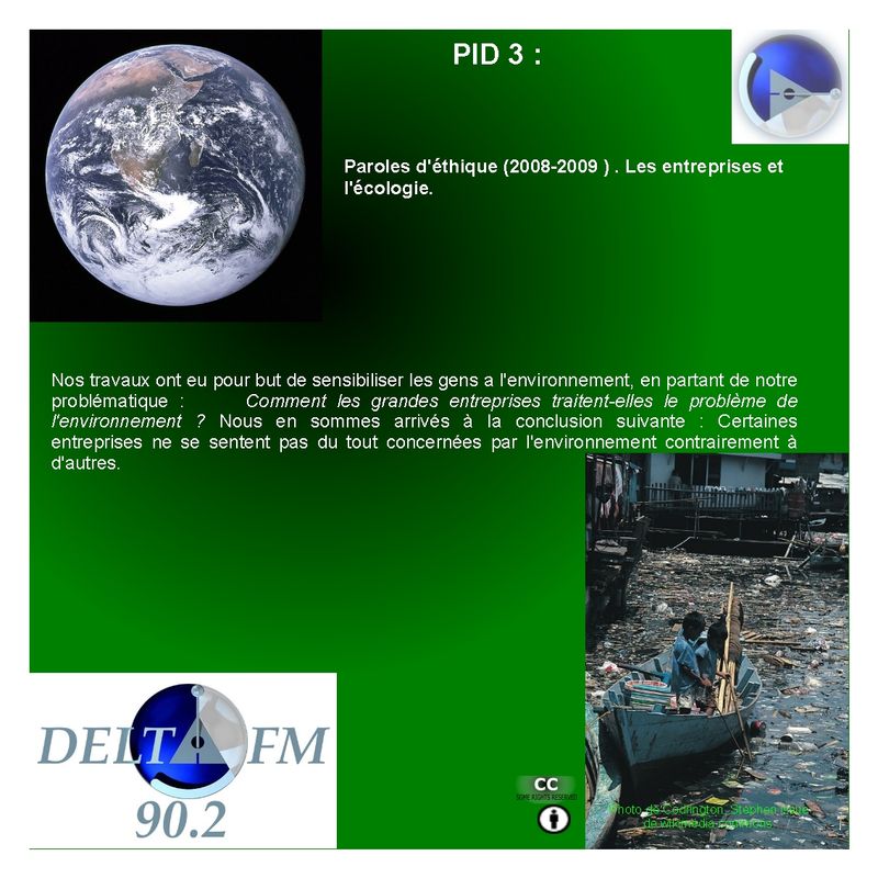 Dans le cadre des projets interdisciplinaires (P.I.D.), les élèves de seconde 3 ont réalisé une émission de radio (environ 10 minutes) sur le thème de l’éthique.