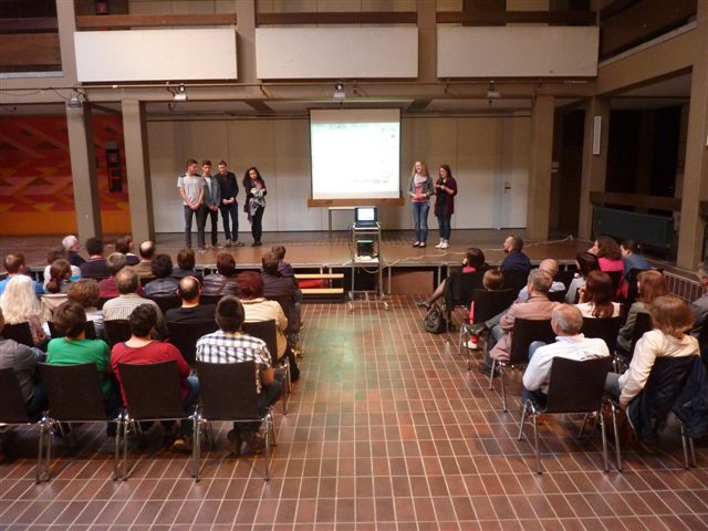 Les performances artistiques des élèves (réalisées par groupe de 5, Français et Allemands mélangés) ont été présentées le vendredi soir aux parents d’élèves dans le lycée d’Eppingen.