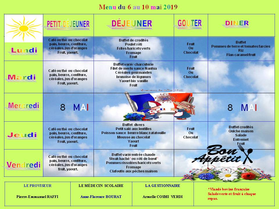Menu du 6 au 10 mai 2019